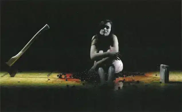 Un THÉÂTRE hyp­no­tique d’Abat­toir fer­mé, rien ne peut se résumer ou se réduire dans des for­mules sim­ples. Pour­tant les enjeux des créa­teurs sont clairs, leur univers s’im­pose d’emblée avec cohérence et con­stance ; mais lorsqu’on se laisse tra­vers­er comme ils le font par ce qui est plus grand que soi, on s’ex­pose à ce que le sujet de l’œu­vre ne se laisse pas aisé­ment com­menter… Néan­moins, on pour­rait dégager des pistes de dis­cus­sion ou d’analyse à par­tir de quelques thèmes ou principes : l’at­tente, l’énigme, la stu­peur, l’ac­cu­mu­la­tion, le rit­uel, le sex­uel.