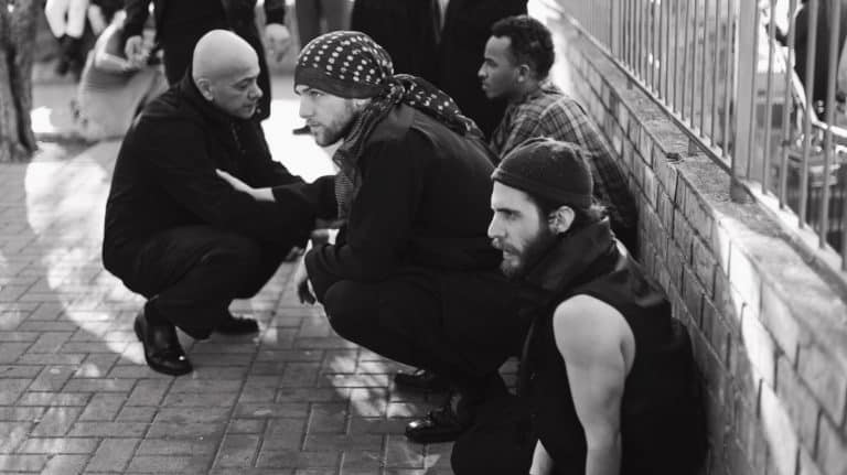 Aziz Chouaki a écrit cette pièce il y a une dizaine d’années. Les personnages d’Esperanza – du nom du bateau sur lequel ils voguent- ne sont donc pas issus des guerres et des conflits de la Lybie, de la Syrie ou de l’Afrique subsaharienne. Ce sont des harraga4, des « brûleurs » d’Afrique du Nord, sept hommes et une femme, de milieux sociaux différents, qui « brûlent » la frontière à travers la mer, pour tenter de rejoindre Lampedusa, guidés par le fol espoir d’une vie meilleure.