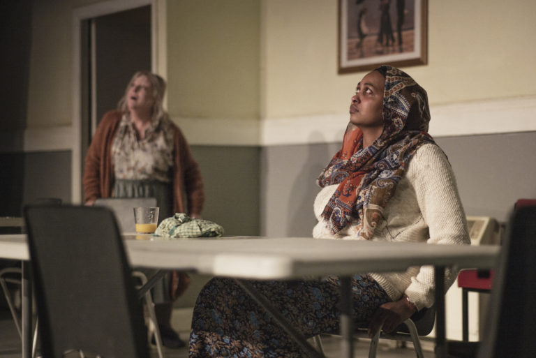 Quelques jours plus tard je découvrais à Paris Love, texte et mise en scène d’Alexandre Zeldine. De prime abord, il s’agit d’une histoire qui rappelle l’ancien « théâtre du quotidien » de Kroetz ou Deutsch assimilé à l’époque par certains critiques à une variante du théâtre naturaliste, confusion dont j’ai entendu l’écho aujourd’hui aussi. Tout laisse croire à cela ! Dans une structure anglaise d’accueil d’urgence se côtoient des personnages d’âge et d’origine différents. Ils y vivent avec l’espoir qu’il s’agit d’une « transition » mais, malheureusement, elle se perpétue, semble être sans fin pour certains d’entre eux. Tout renvoie à ce que l’on appelait dans les pays communistes « les appartements communautaires », qui mettaient à l’épreuve les êtres et leurs aptitudes à cohabiter pour partager un espace collectif, des toilettes à la salle à manger. Le décor restitue dans les moindres détails, de la chasse d’eau à la branche qui bouge sur le toit, ce lieu que les locataires doivent partager à plusieurs. Nous sommes les témoins de ces conditions de vie, de cette dégradation ou de cette amertume qui, sans cesse, alternent sur fond de calme, en apparence, plat. L’extrême subtilité d’Alexandre Zeldine provient de la manière de diriger ses comédiens, de parvenir à un jeu sans cris ni excitation, un jeu serein, limpide comme une larme. J’y ai reconnu l’autre variante de la tendresse… tristesse avec tendresse ! Tristesse des « humiliés et offensés » pour reprendre un titre de roman célèbre. C’est ce qui, au-delà des apparences naturalistes, se dégage de ce spectacle rare, murmuré tel un Tchékhov de nos jours ! C’est la tendresse qui sauve !