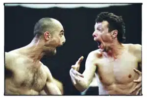 Fabrizio Cassol : En 2009, nous avions clôturé la tournée de Pitié ! d’Alain Platel à Kinshasa lors de la première édition du festival du KVS. La musique de cette pièce était une adaptation de la Passion selon St Mathieu de Bach dans laquelle Serge Kakudji interprétait symboliquement le rôle du Christ. J’étais déjà allé à Kin plusieurs fois à la demande de Jan Goossens, j’ai eu l’occasion d’y rencontrer Serge en prospectant le milieu musical. À dix-sept ans, il avait une force vocale indéniable et une personnalité touchante. Alain a directement craqué et je lui ai proposé de participer à cette création. C’était un pari plutôt risqué étant donné l’intensité du rôle, la longueur de la tournée et son manque d’expérience. Toute une synergie s’est mise autour de lui pour que cela soit possible tout en lui permettant de suivre des études musicales de haut niveau, ce qui n’est pas possible au Congo.